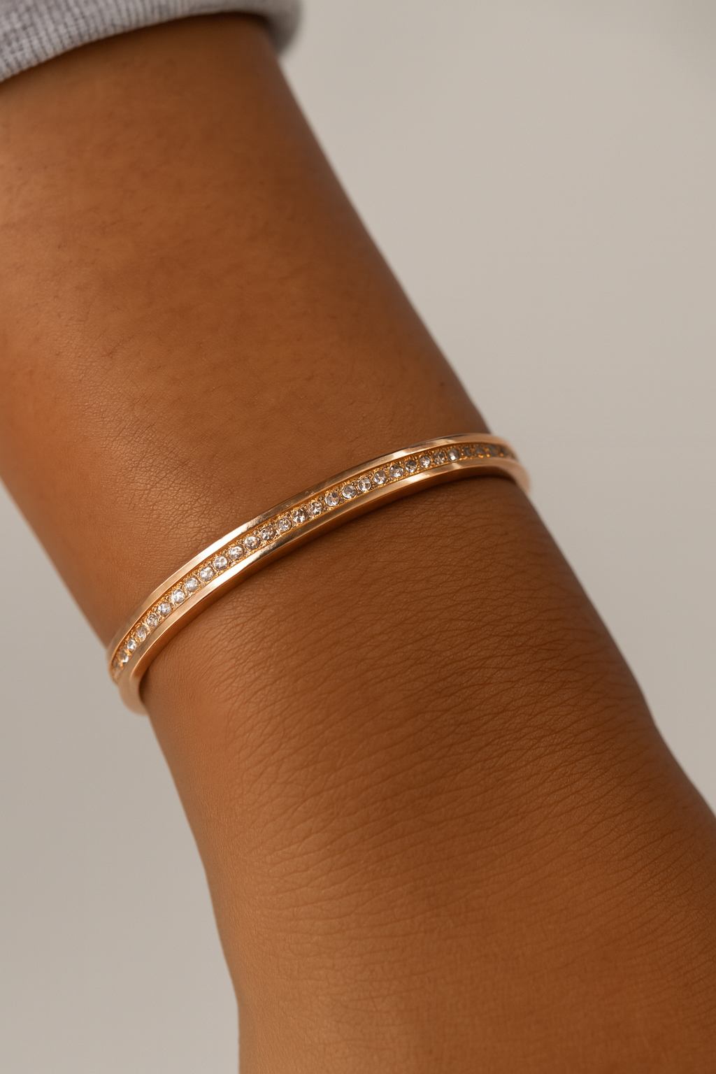 The Dazzle Duet Bracelet features a chic double-layer design with shimmering crystal accents — because one strand just isn’t enough. It’s your perfect partner for both bold nights and refined days.