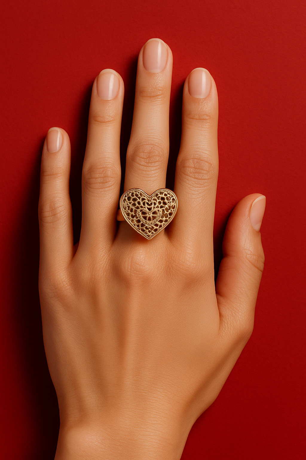 The Heart of Gold Ring features a delicate band adorned with a golden heart centerpiece — sweet, symbolic, and effortlessly elegant. It’s the perfect piece to show love (to yourself or someone special).