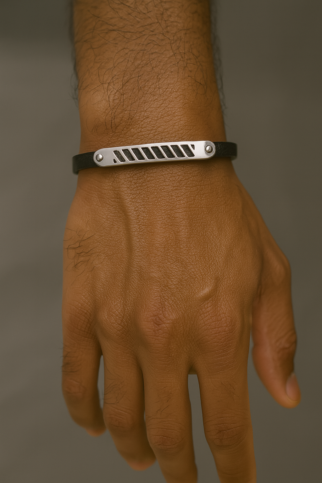 The Modern Gentleman Bracelet features sleek black links paired with polished metallic accents — designed for the man who leads with quiet confidence and undeniable style.