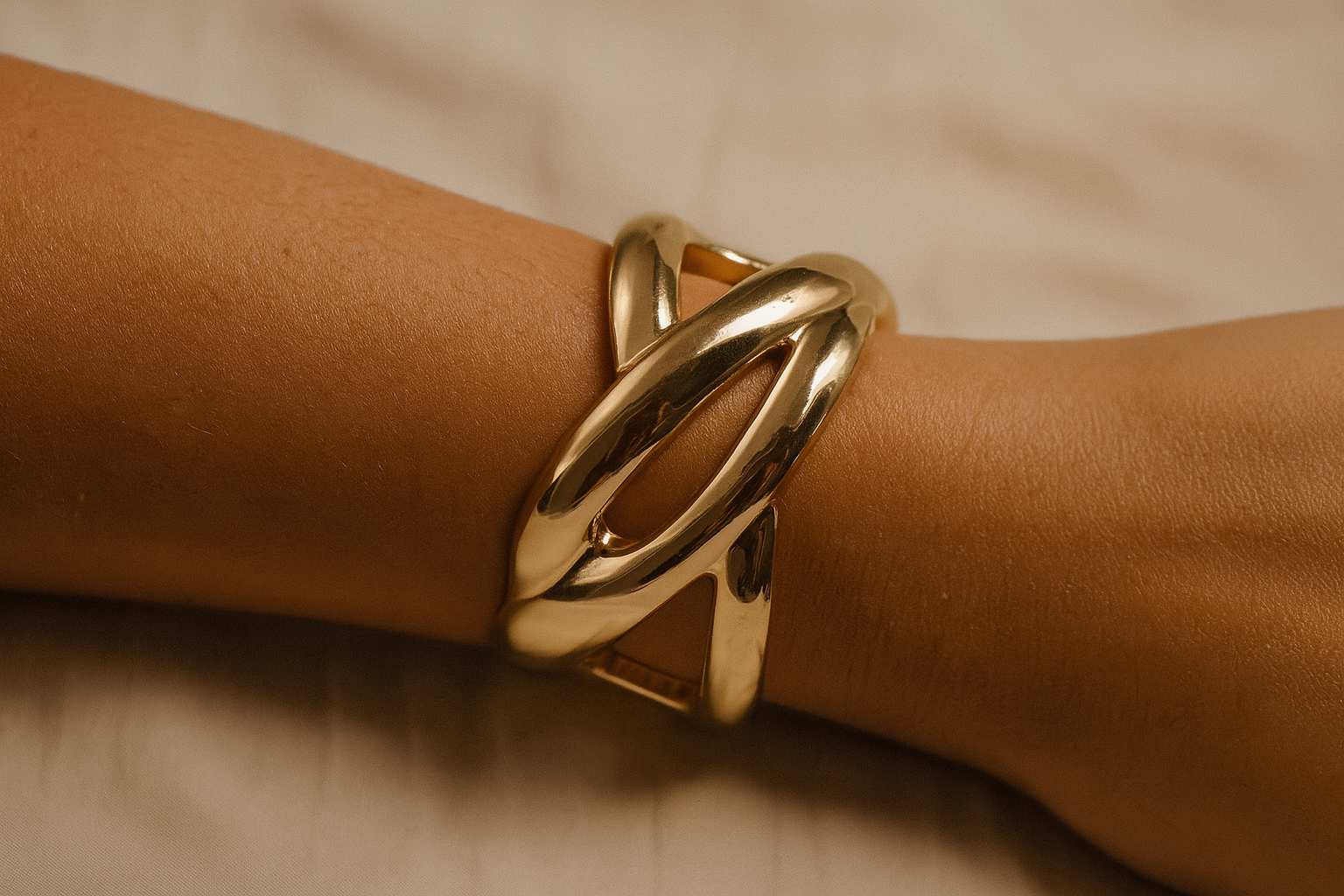The Renaissance Radiance Bracelet brings a regal air to your collection. Its vintage-inspired silhouette and gleaming gold finish evoke a golden age of fashion — designed for the woman rewriting the rules.