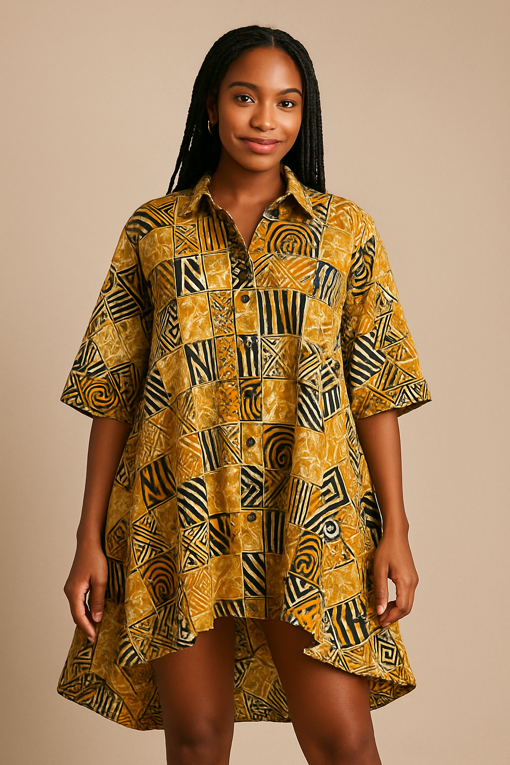 Knee length; African print design; Gold
